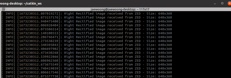 rosrun zed_video_sub_tutorial zed_video_sub 명렁어로 실행시킨다.